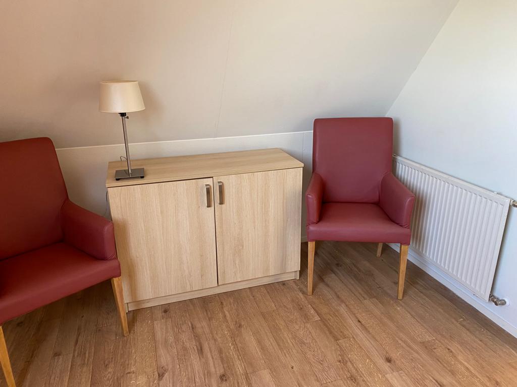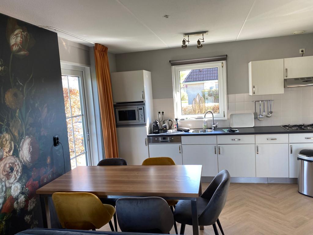 In dezelfde ruimte is ook de keuken te vinden. De keuken is voorzien van een Senseo apparaat, waterkoker, koelkast met vriesvak, combi magnetron en een vaatwasser.