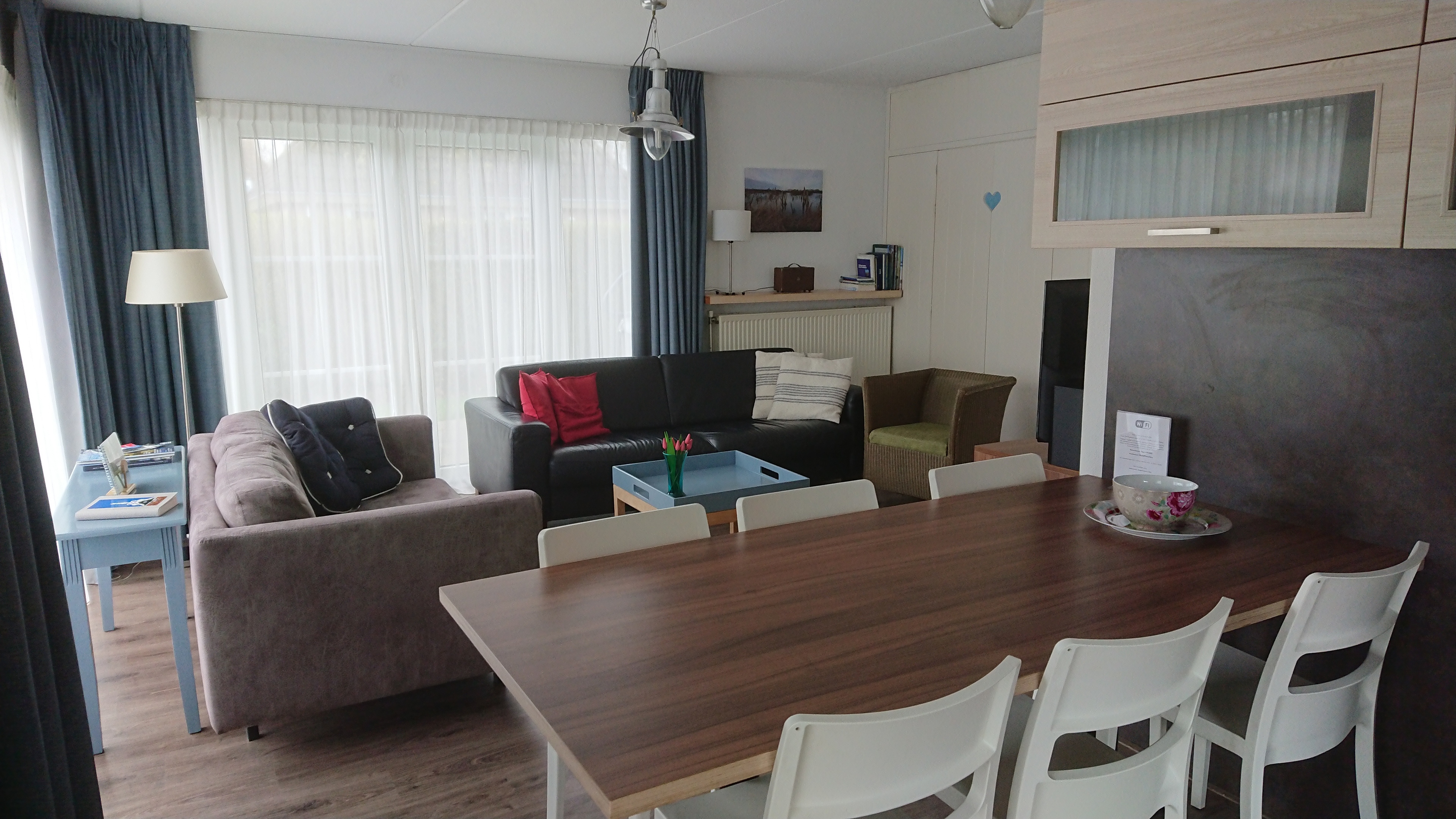 De woonkamer grenst zich aan de moderne keuken. In de keuken vindt u o.a. een vaatwasser, combi magnetron en koelkast. In de woonkamer vindt u tevens een knusse bedstee voor twee volwassenen.