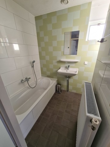 De bungalow heeft een apart toilet en een badkamer die gerenoveerd is met inloopdouche, wastafel en ligbad.