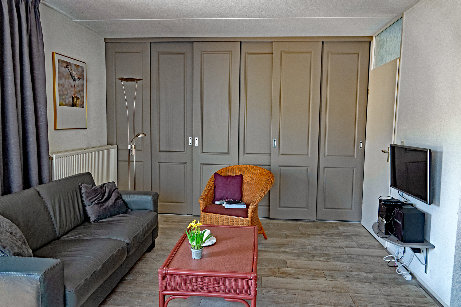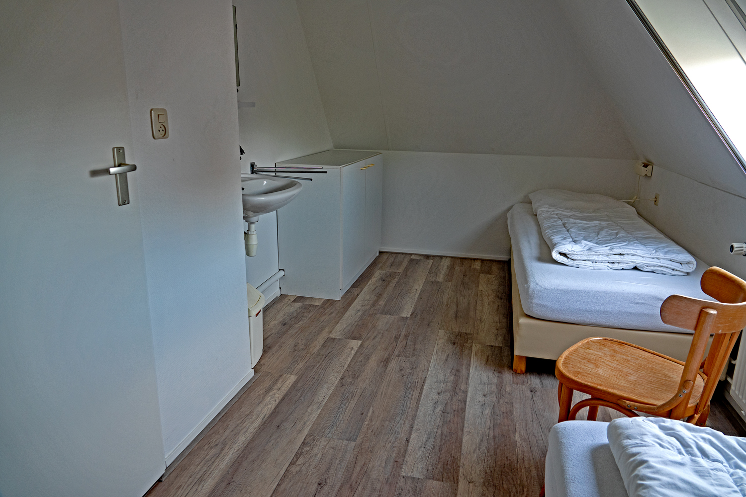 Vanuit de hal komt u in de pas gerenoveerde badkamer met ligbad en doucheruimte en wastafel. Vanuit deze hal heeft u tevens toegang tot het apart gesitueerde toilet. Via de trap komt u in de linker slaapkamer met 2 eenpersoonsbedden. In deze kamer heeft u beschikking over een wastafel. Het bijplaatsen van een kinderbedje is geen probleem in deze bungalow. Op de eerste verdieping bevindt zich tevens een aparte doucheruimte met wastafel en toilet. Op de rechter slaapkamer staan ook 2 eenpersoonsbedden tot uw beschikking. Buiten op het terras kunt u gebruik maken van de aanwezige tuinset om ’s avonds heerlijk van het uitzicht te genieten.