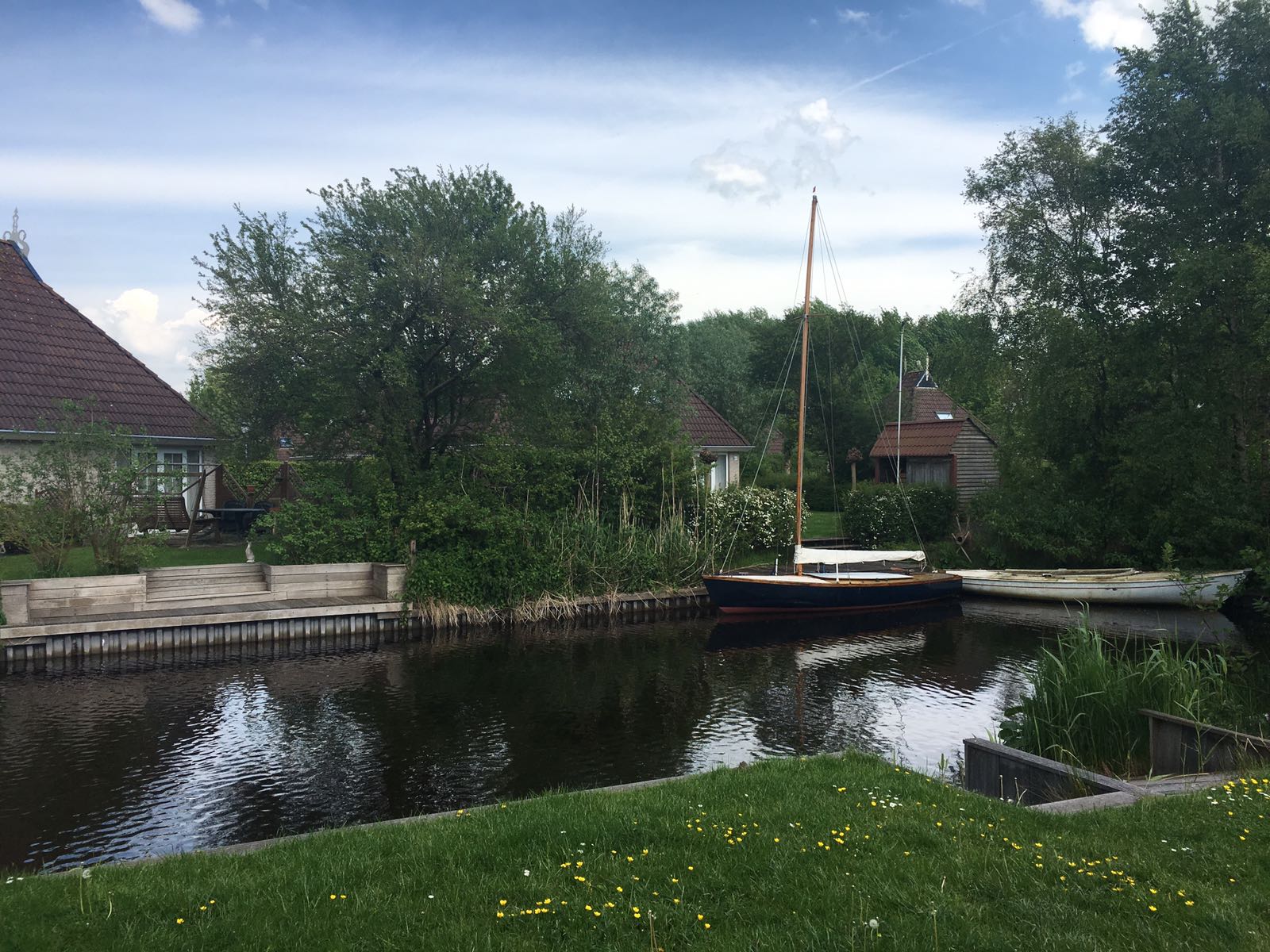 De bungalow is voorzien van een brede tuin, met eigen steiger aan het water en