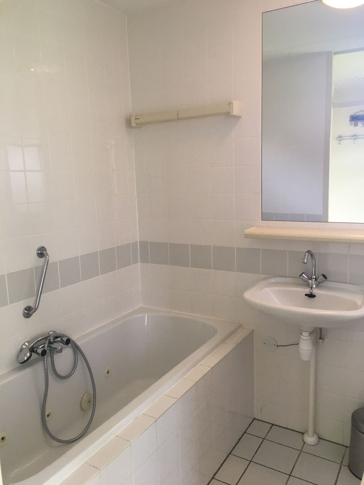 In de hal bevindt zich een badkamer die is voorzien van een bubbelbad