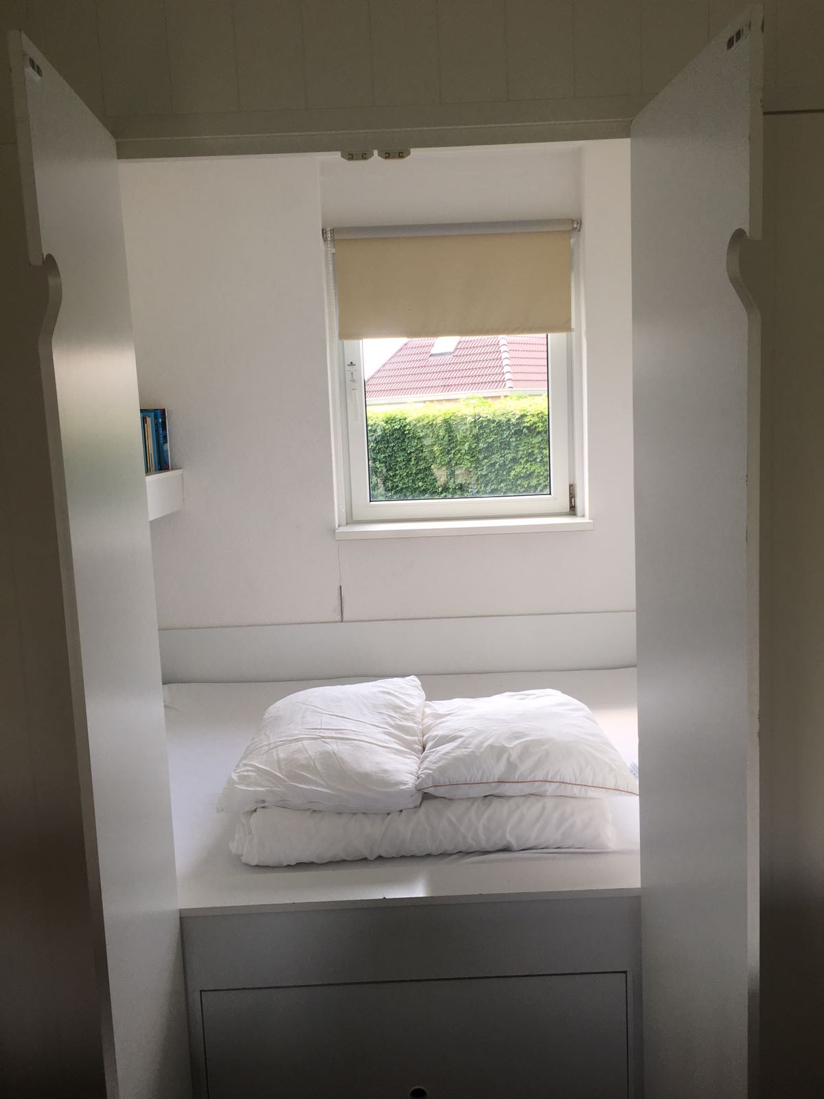 Ook vindt u op de beneden verdieping een tweepersoons bedstee, waar u heerlijk in kunt slapen!