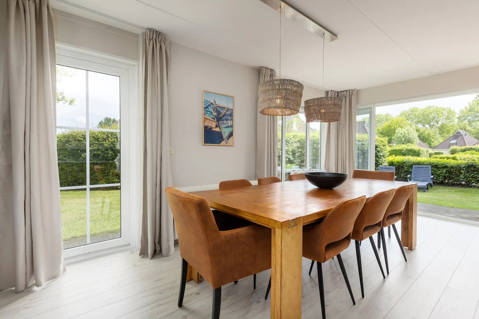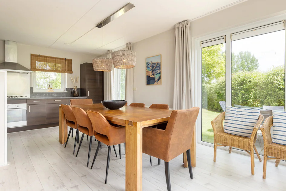 Wellness Wiidbungalow Plus 8 is een vrijstaande 8-persoons bungalow aan het water. Voorzien van een eigen aanlegsteiger en een terras met tuinmeubilair.