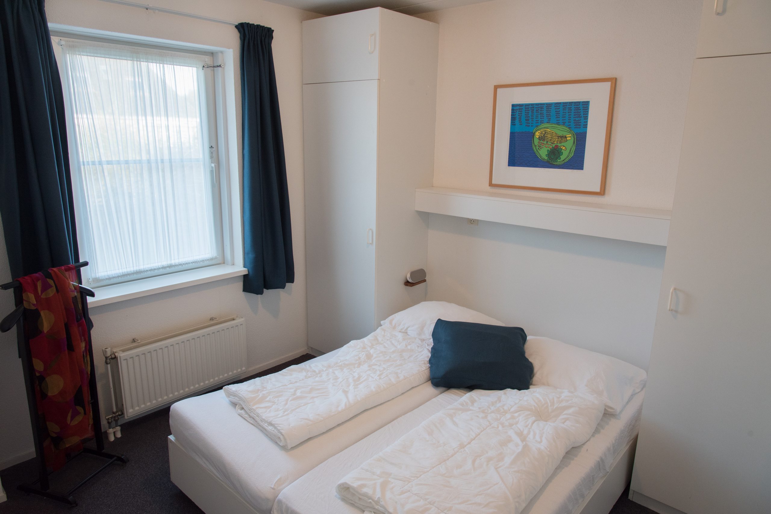 Op de benedenverdieping bevindt zich een slaapkamer voorzien van twee eenpersoonsbedden.